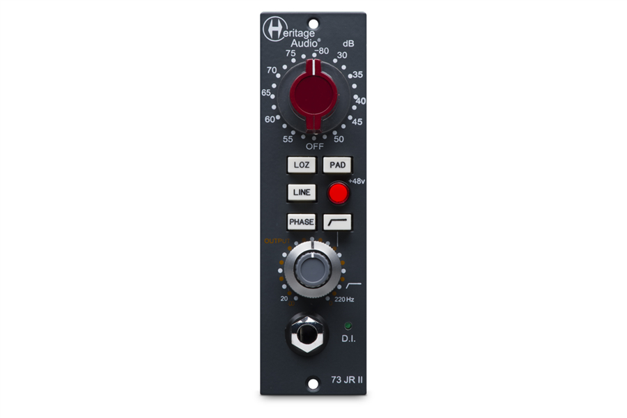 Mikrofonní předzesilovač Heritage Audio HA73jr II přináší vintage zvuk ve verzi série 500. Je založen na kultovní 1073, rozzáří a projasní zvuk každého mikrofonu. Díky separátnímu ovládání ziksu na vstupu a výstupu můžete dosáhnout bohatého a sytého zvuku jako na velké vintage konzoli. Díky nastavení gainu v neuvěřitelném rozsahu 80 dB zisku, získáte předzesilovač, který je připraven dostat to nejlepší z jakéhokoliv mikrofonu - kondenzátorového, dynamického nebo páskového. Jiínak řečeno, je velmi obtížné dostat z Heritage Audio HA73jr při jakékopliv situaci špatný zvuk.