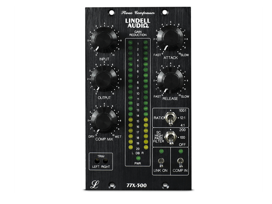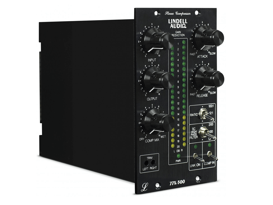 Stereo kompresor 77X-500 nabízí zvukově podobnou kompresi ve stylu 1176, jako jeho mono předchůdce 7X-500. Navíc však umožňuje stereo provoz v link nebo samostatném módu. Ještě k tomu má možnost nastavení doby náběhu (Attack) a uvolnění (Release). Tři přepínatelné kompresní poměry a sidechainový high-pass filtr umožňují zachování původní přirozené dynamiky. Ovladač mixu čistého a komprimovaného signálu Comp Mix umožňuje nastavení paralelní komprese. Úroveň komprese precizně ukazuje dvojitý LED VU metrem. Všechny FET tranzistory jsou párovány pro dokonalý souběh kompresoru ve stereo provozu.