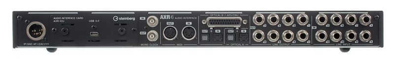 Steinberg AXR4U poskytuje veškerou konektivitu, kterou vyžadují špičkové profesionální audio sestavy. Čtyři kombinované vstupy XLR/TRS jsou vybaveny digitálně řízenými hybridními mikrofonními předzesilovači, každý s přepínatelnými obvody Rupert Neve Designs Silk které nabízejí ten nejmuzikálnější vstupní signál. Stejně jako čtyři kombinované vstupy, dalších 28 vstupů a 24 výstupů zahrnují osm vstupů TRS a osm výstupů TRS, 2 x 8 kanálů ADAT/S/PDIF (nebo 1 x 8 ADAT a 1 x 8 AES / EBU) plus slot pro digitální I / O karty pro případné budoucí rozšíření konektivity. K dispozici jsou také word hodiny, MIDI I / O porty a dva konektory pro sluchátka se samostatným ovládáním hlasitosti. S vysokým rozlišením 32 bit / 384 kHz, monitoringem bez latence s DSP DSP, pokrokové redukci jitteru SSPLL a 28 x 24 sběrnici je AXR4U opravdu vynikajícím zvukovým rozhraním pro velká profesionální i malá studia.