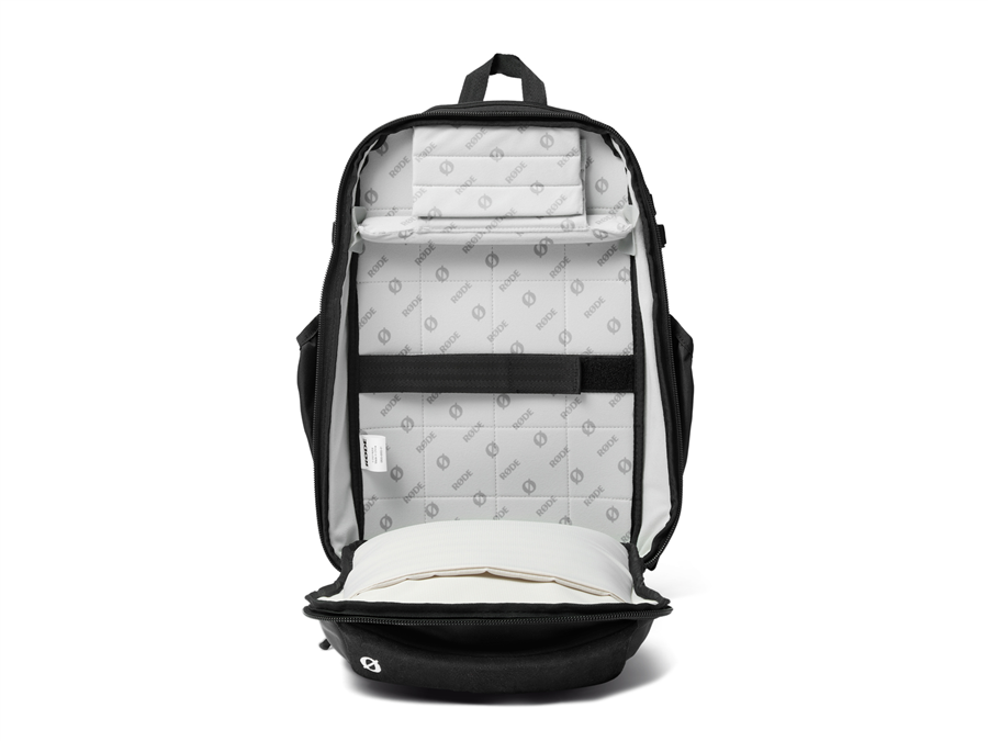 RØDE Backpack je vyroben z vysoce kvalitních materiálů včetně měkké, odolné rukojeti Alcantara®, balistických nylonových popruhů a voděodolného vnějšího povrchu. Pojme RØDECaster Pro nebo Pro II, mikrofony, studiová ramena a další příslušenství včetně notebooku až do velikosti 16“. Ergonomické nastavitelné ramenní popruhy s podporou zad a hrudníku zajišťují absolutní pohodlí. Vnější kapsy a přihrádky poskytují úložný prostor pro další potřebné vybavení nebo osobní věci.