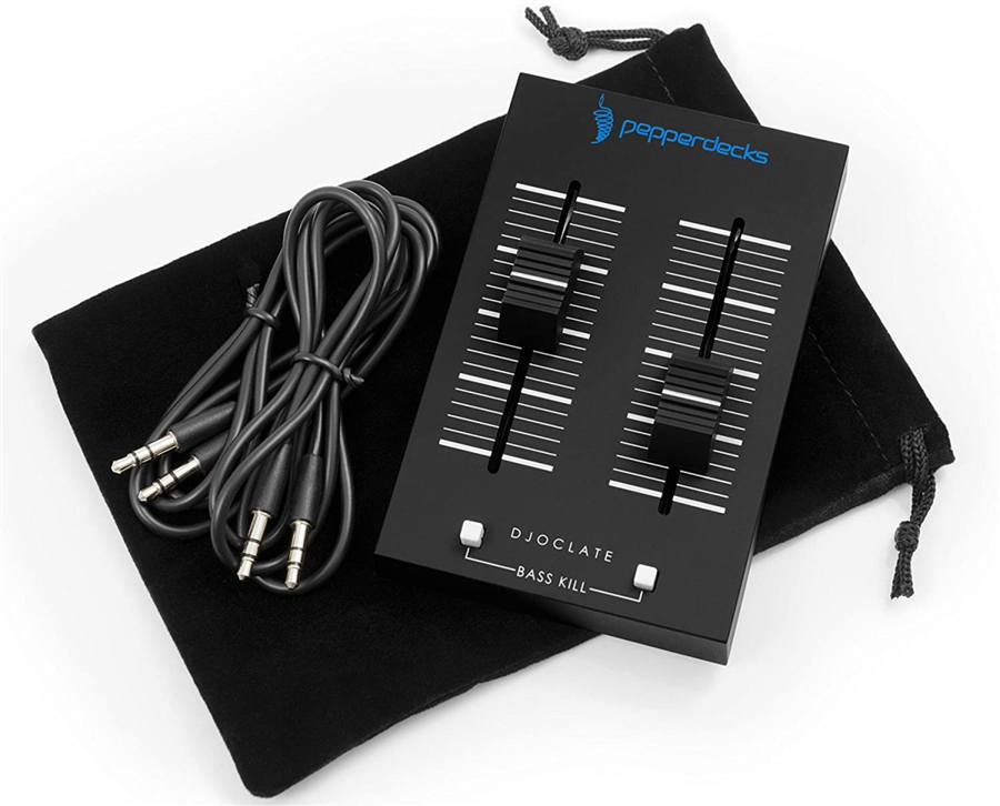 Pepperdecks DJoclate je kapesní dvoukanálový mixer / audio splitter. Nepotřebuje napájení a tak se hodí pro mnoho aplikací a jednoduché mixování dvou audio signálů ze zdrojů jako telefon, tablet, počítač, MP3 přehrávač apod. nebo naopak rozdvojení jednoho signálů do dvou.