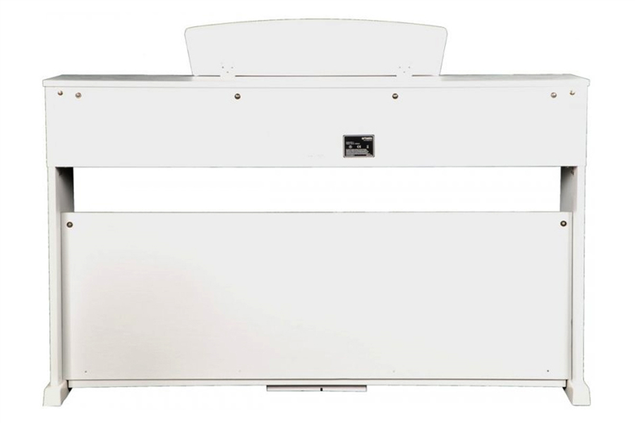 Klavírní skříň je v provedení bíle mořeného dřeva s čistými liniemi, které doplní jakýkoli dekor interiéru. Sklopný kryt chrání klaviaturu před prachem a nečistotami.