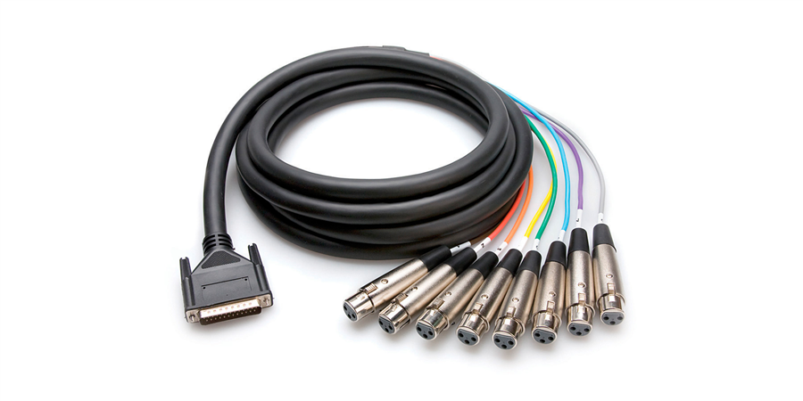 Symetrický multipárový kabel Hosa s konektory XLR3F / DB25. Určen pro připojení zařízení s XLR výstupy k zařízením se vstupy DB25. Délka 5m.