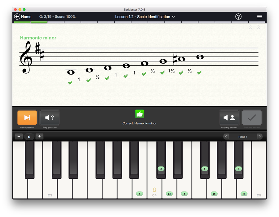 - Připojte MIDI nástroj a hrajte své odpovědi.