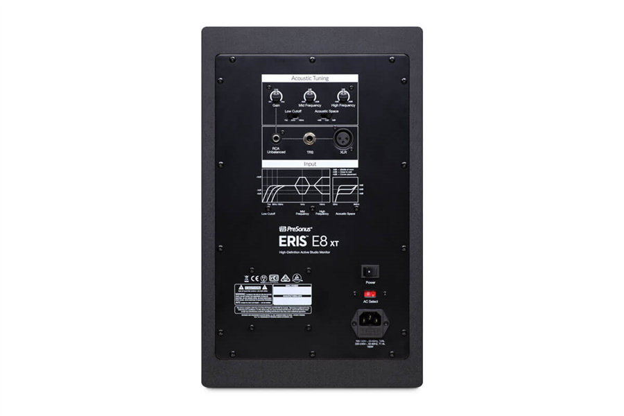 Víme, že moderní nahrávací studio může být dnes umístěno naprosto kdekoliv, ať už jde o malou ložnici nebo speciálně postavenou budovu v hodnotě několika milionů dolarů. To je důvod, proč je každý náš studiový monitor vybaven ovládacími prvky, s jejichž pomocí lze vždy nastavit tu nejvyrovnanější frekvenční charakteristiku pro vaše konkrétní prostředí. Ovladače Acoustic Tuning vám dovolí monitory Eris E8 XT ve vaší místnosti perfektně nakonfigurovat. K dispozici máte Low-cut společně s ovladači Mid a High, stejně tak jako třípolohový přepínač Acoustic Space, který vám umožní snadno kompenzovat frekvenční nedostatky, které vznikají umístěním monitorů v blízkosti zdí nebo v rohu místnosti.