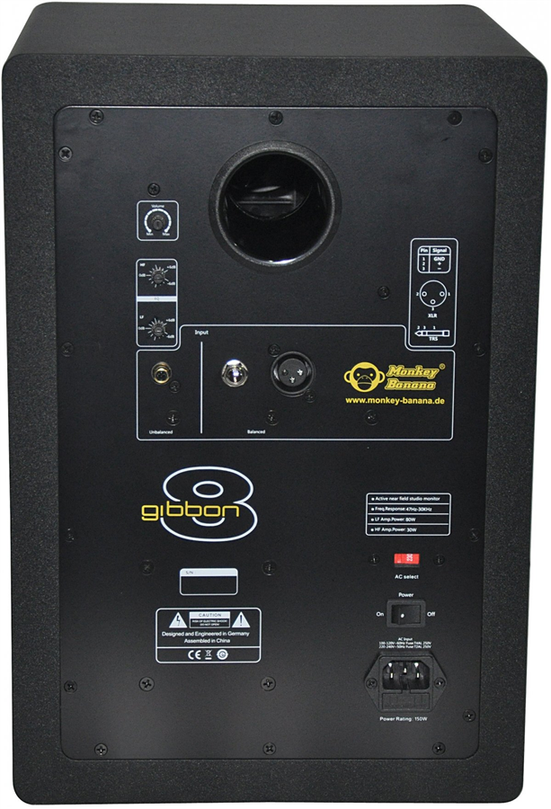 Monkey Banana Gibbon 8 je aktivní monitor pro domácí a profesionální nahrávací studia. Tyto 8” velké digital-bi-amp reproduktory jsou konstruovány pro práci ve středních až velkých monitorovacích místnostech. Díky významnému rozšíření nízkofrekvenčního rozsahu směrem dolů je Gibbon 8 také ideálním DJ-monitorem. Vedle profesionálních studií je tento subwoofer také skvělým doplňkem domácích HiFi sestav ve velkých obývacích pokojích.