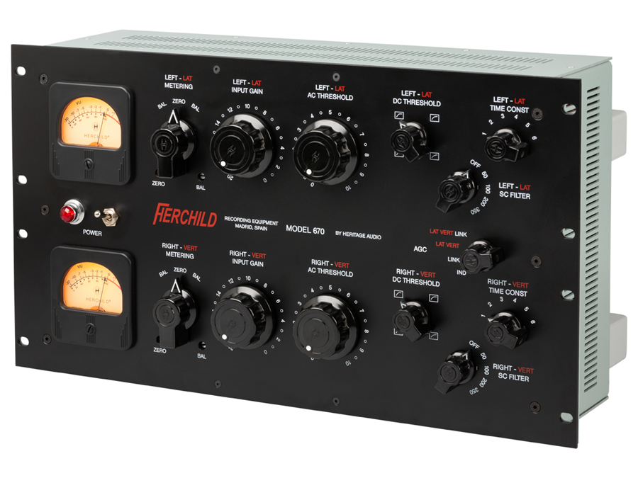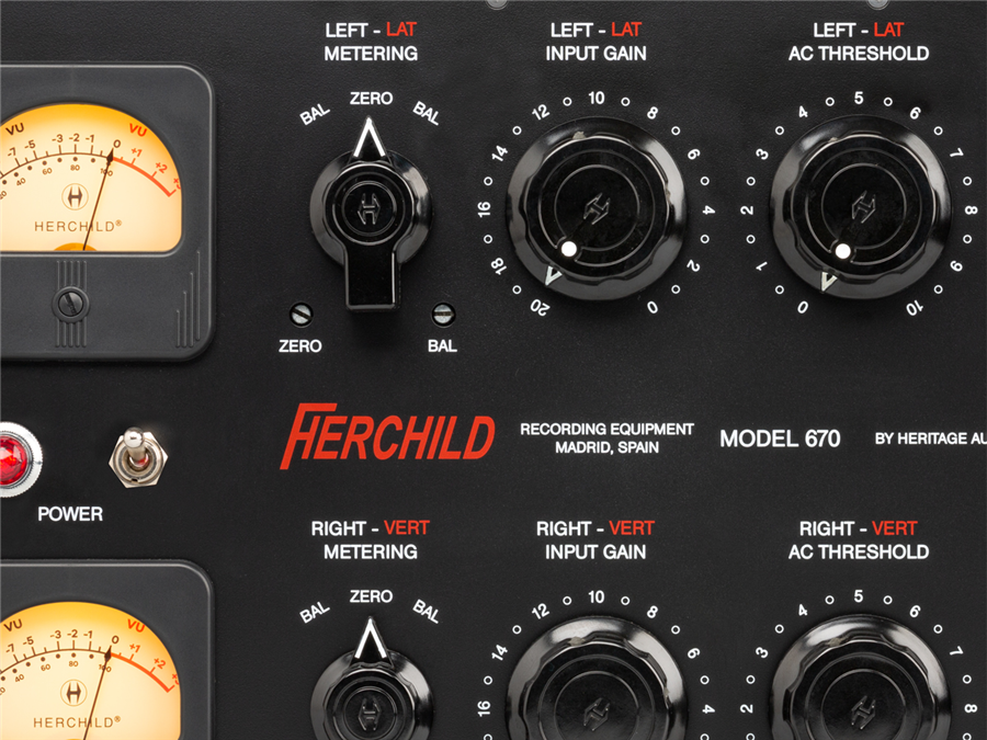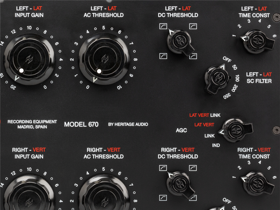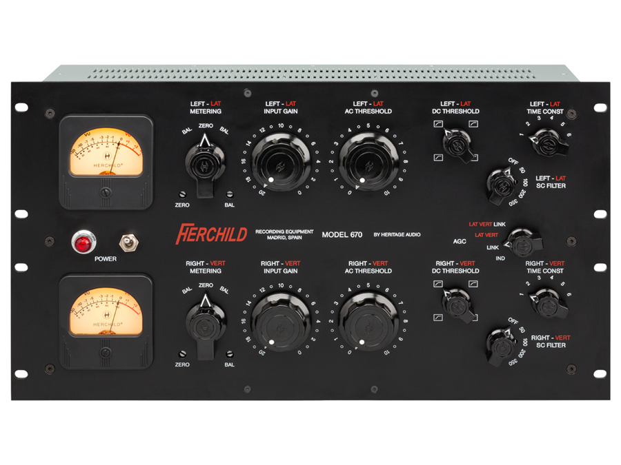 - LAT VERT - dalším neustále populárnějším módem je M/S, kdy se zpracovává nezávisle střed stereobáze (Mid) a její strany (Sides). Je to velmi účinný způsob rozšíření stereo obrazu a zpevnění středu stereobáze. Horní kanál Herchild 670 ovládá informace 'Side' a spodní kanál určuje chování 'Mid'.