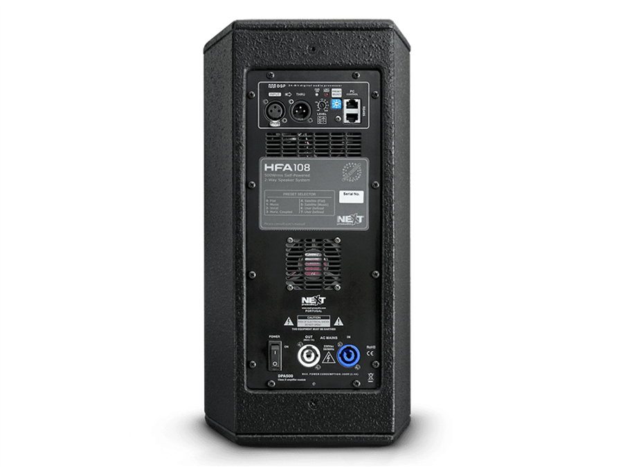 HFA 108 je aktivní reprobox s 8" basovým reproduktorem a 1" výškovým driverem navržený tak, aby poskytoval: