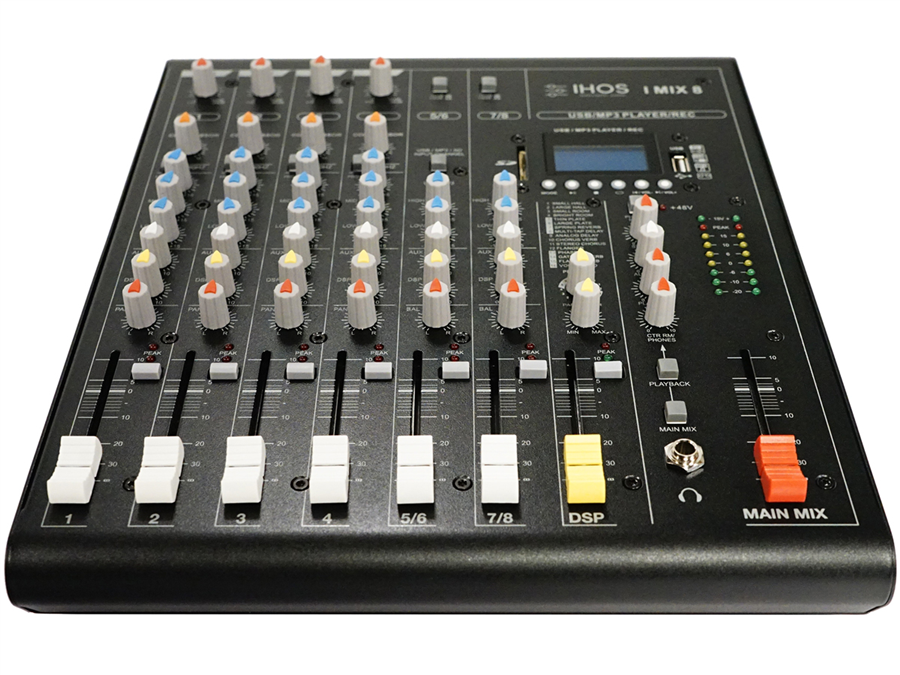 mixážní pult, 4x Mic/line, 2x line stereo, Aux, DSP, EQ na vstupech, sluchátka, 2-Track In/Out, Control Room, USB/SD přehrávač/rekordér