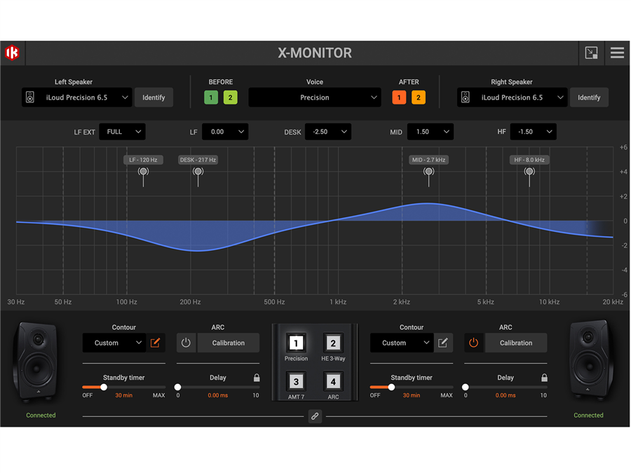 Řada iLoud Precision představuje X-MONITOR, nově vyvinutou pokročilou ovládací aplikaci pro Mac a Windows, která pomáhá s kalibrací ARC a umožňuje rozšířené nastavení akustického prostoru a úpravy pro doladění iLoud Precision podle vašeho vkusu, plus pohodlný vzdálený přístup k nastavení na zadním panelu Precision. Software je plug-n-play přes jednoduché USB připojení bez nutnosti speciálního nastavení.