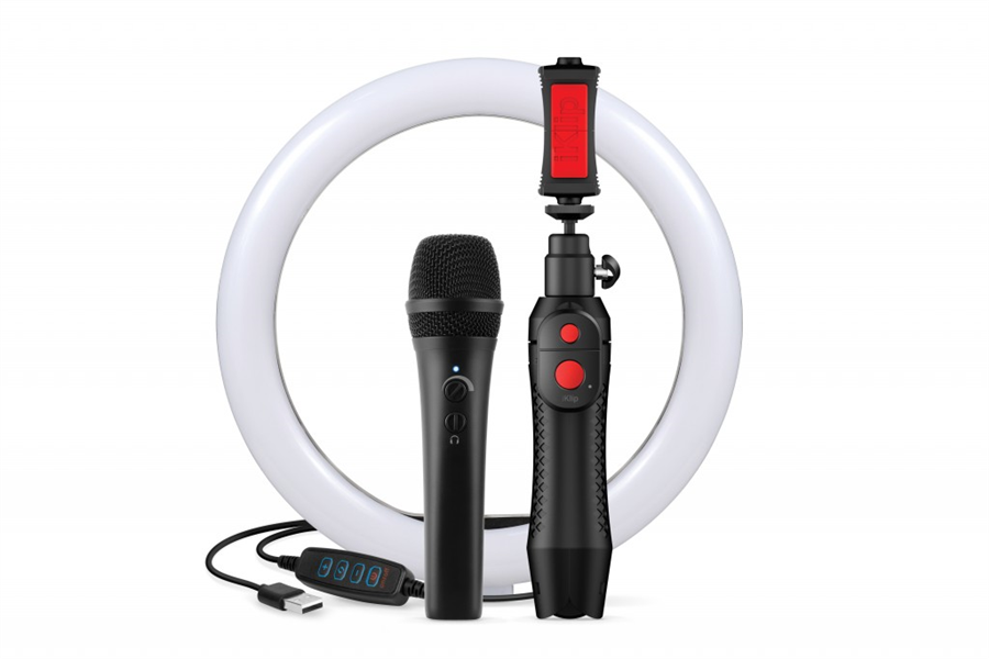 HD zvuk a osvětlení pro váš smartphone s multifunkčním stojanem 4 v 1, kondenzátorovým mikrofonem iRig Mic HD (až 24bit 96kHz) a 10" LED světelným kruhem