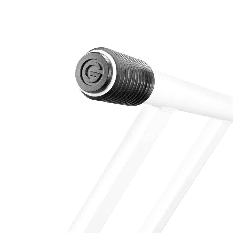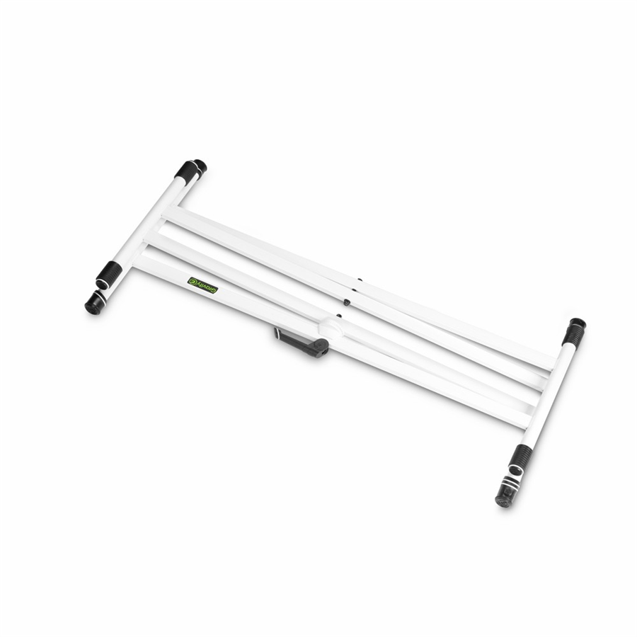 Bílý klávesový stojan s dvojitou podporou, 10-90 cm, nosnost 65 kg, hmotnost 4,45 kg.