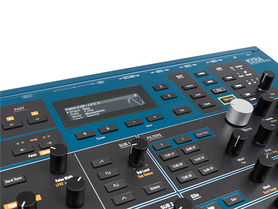 Každý part je kompletním samostatným syntezátorem se zdroji zvuku (OSC GROUP 1, OSC GROUP 2, SUB 1 a SUB 2); FILTRY; modulátory (EG, LFO a MOD MATRIX); multiefektovou jednotkou (EFFECTS); USB 2. 0 připojení - může může posílat MIDI data a také posílat zvuk jako digitální audio po USB.