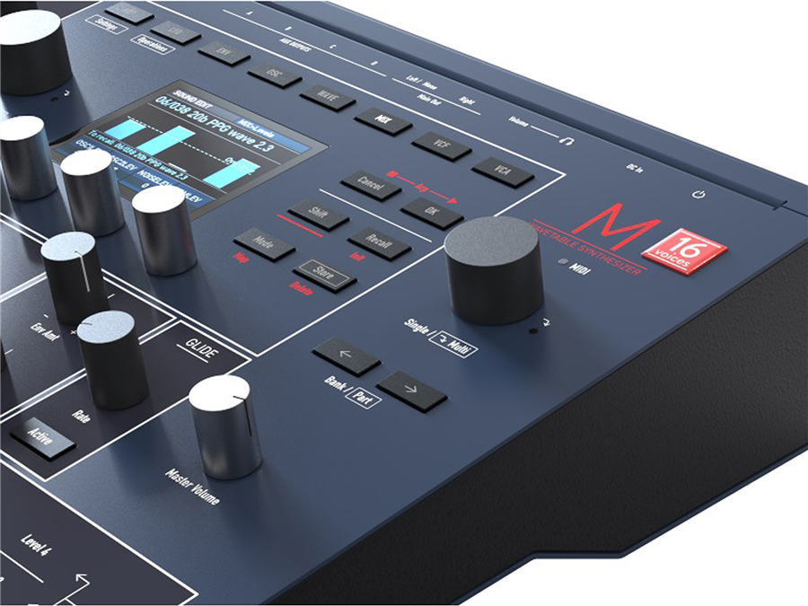 Hudebním srdcem M 16 Voice je šestnácti hlasý polyfonní WAVETABLE SYNTHESIZER se čtyřmi party multitimbrálu.