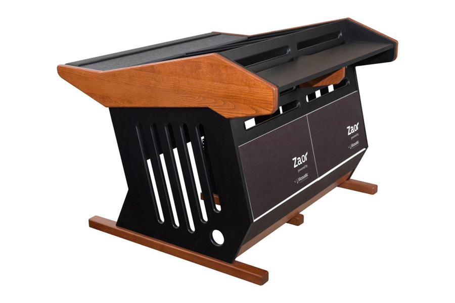 Nízký profil stolu je konstruovaný tak, aby co nejméně ovlivňoval reprodukci zvuku. Tomu napomáhají absorbční panely Vicoustic, které minimalizují chaotické odrazy, integrované v jeho zadní části. Pracovní plocha je vyrobena z Aerstopu, akustického materiálu, který taktéž minimalizuje zvukové odrazy a zároveň plní funkci podložky pod myš. Malá loketní opěrka zaručuje plynulé psaní a zároveň šetří vaše zápěstí. Celý stůl je konstruován v designu „více vzduchu nežli hmoty“, což jednak napomáhá volnému proudění vzduchu uvnitř jeho prostoru a zároveň se tím omezuje vznik stojatých vln. Duální kabelová trasa odděluje signálovou část od napájecích kabelů, a minimalizuje tak brum a indukční šum. Chromové tyče s připravenými Velcro pásky na suchý zip umožňují rychlé a čisté svazkování kabeláže. 24 rackových jednotek 19“ - všechny důležité nástroje máte v dosahu a na minimálním půdorysu. To umožňuje perfektní workflow. Méně používaná 19“ zařízení lze jednoduše umístit pod stůl, kde se nachází dalších 12 U rackového prostoru. V zadní části stolu je zapuštěná snížená police pro umístění meter bridge, obrazovek nebo reproboxů na volitelných izolátorech, které zabraňují přenosu zvuku přes stůl, a tím eliminují rozmazání akustického přednesu v nižších frekvencích. Nic zde není navíc a nic zde nechybí. Maestro - souznění ergonomie, akustiky a designu.