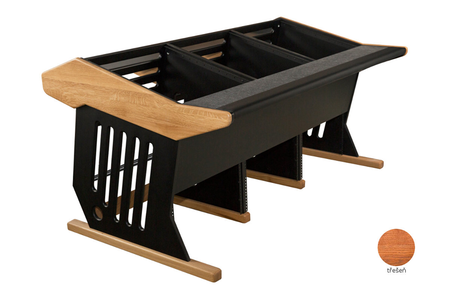 studiový stůl se 3x rack 12U na pracovní ploše, rack pro PSU, větrání