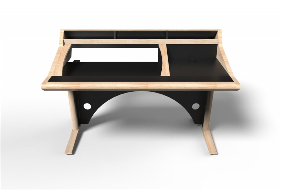 Produkční stůl pro Behringer X32 a podobné DAW mixpulty s integrovaným 6 U rackovým prostorem. Povrchová úprava dub v kombinaci s černou.