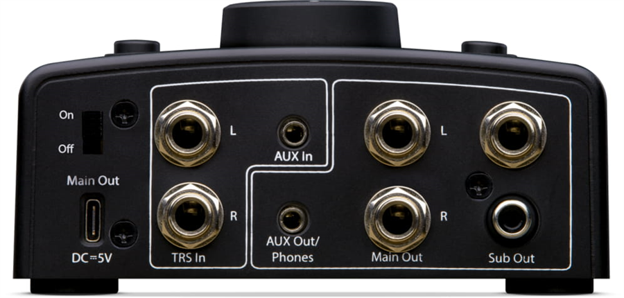 - 2x 1/4 TRS Vstup, 2x 1/4 TRS výstup, Subwoofer out - TRS/Cinch