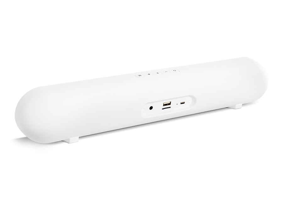 je bateriový soundbar s Bluetooth, který se hodí do interiéru i venkovních prostor. Díky svému diskrétnímu a elegantnímu designu jej můžete umístit do obývacího pokoje, kuchyně, ložnice, kanceláře i použít na večírcích s přáteli ve vnitřních nebo venkovních prostorách. Dodává se v černém i bílém provedení.