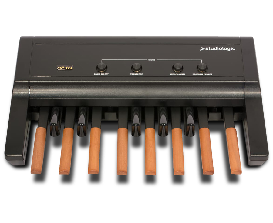 Varhanní pedál - MIDI kontroler MP-113 umožňuje připojení k jakémukoli MIDI zařízení a hru pomocí nohou. Je ideálním doplňkem digitálních varhan nebo společníkem pro hudebníky, kteří mají plné ruce práce hraním na klávesy, kytaru nebo jiný nástroj, a chtějí doplnit zvukové spektrum o masivní basové zvuky.