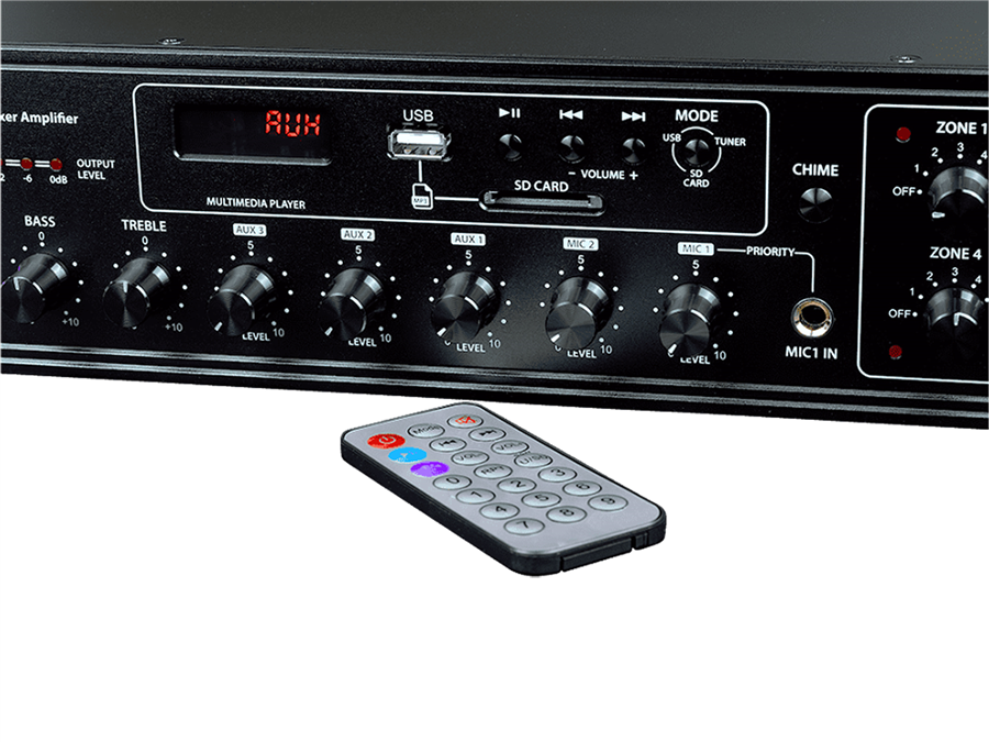 - výstupy zón: 6 zón s vlastním ovladačem hlasitosti