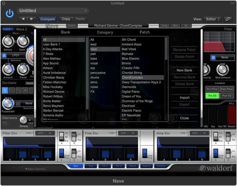 Nejoceňovanější virtuální nástroj od Waldorf! Waldorf NAVE obsahuje dva wavetable oscilátory s nevídanými možnostmi nad rámec běžné vlnové syntézy. Spektrum zvuku může být absolutně nezávislé na frekvenci, samotné vlny mohou být periodické, plně šumové nebo cokoliv mezi tím.