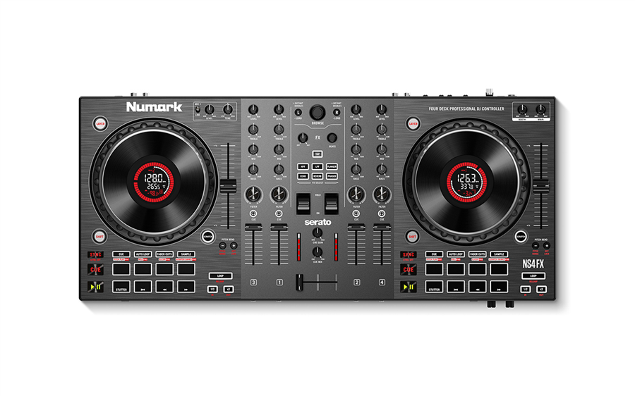 Numark NS4FX je 4-kanálový profesionální DJ kontroler s integrovanými displeji v každém z obou velkých 6" talířů. S plnou kontrolou nad 4 decky (po upgradu), přímým přístupem k efektům a LO-HI filtru, profi vstupy i výstupy (XLR), dvojitým mikrofonním vstupem nabízí ultimátní řešení pro každého i zkušeného DJe. Součástí je Serato DJ Lite.