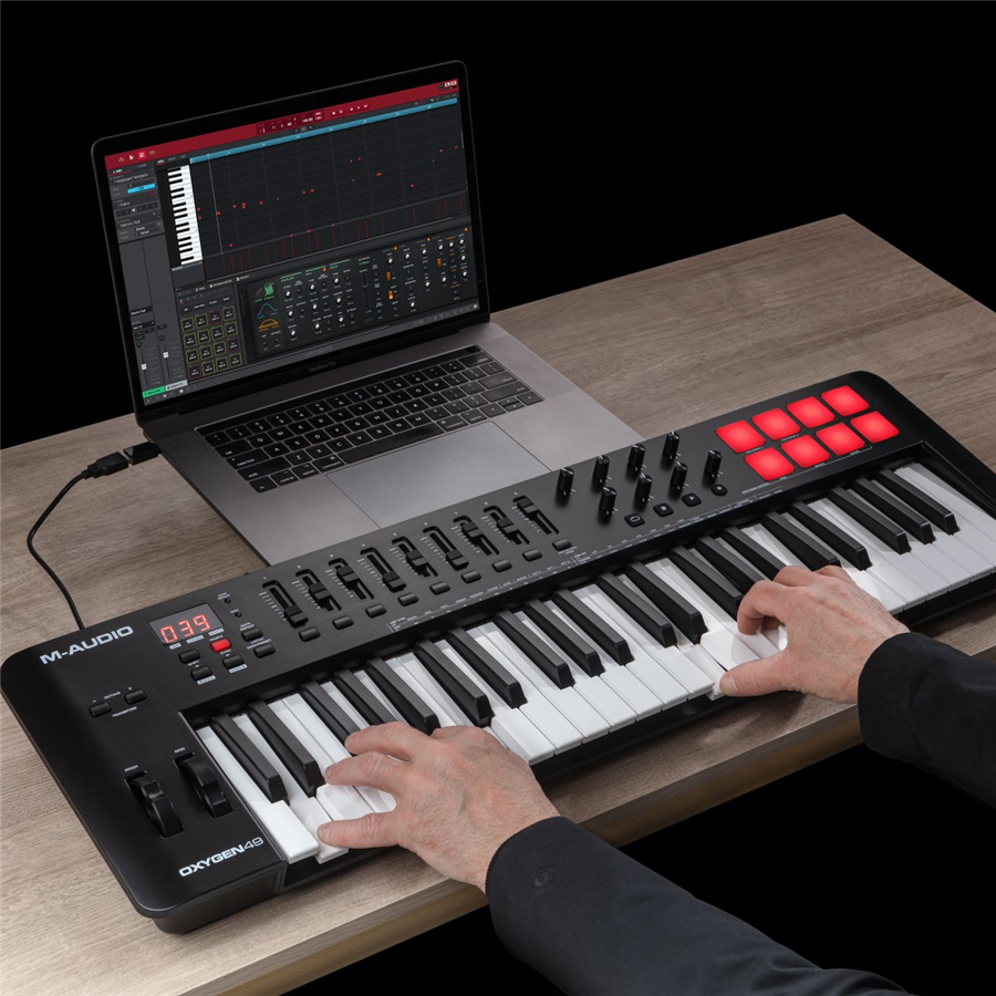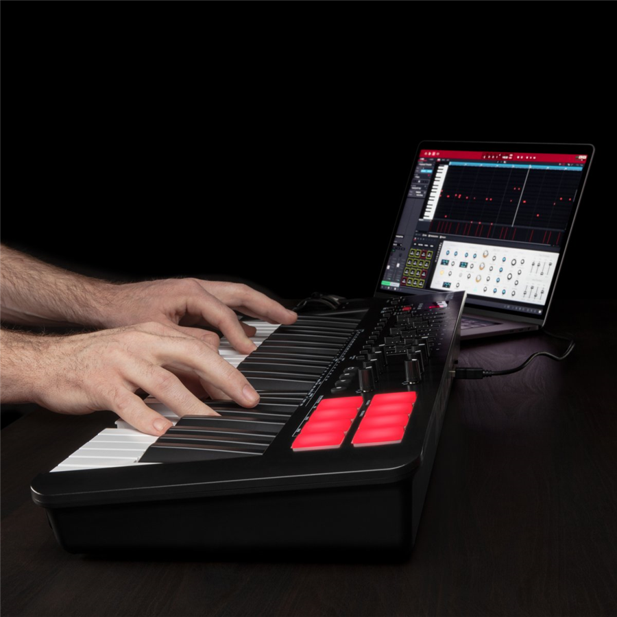USB MIDI klaviatura se 49 plnohodnotnými dynamickými klávesami, funkcemi Smart Chord, Smart Scale a programovatelnými pady. Nabízí arpeggiátor, devět faderů, otočné ovladače a pokročilý transportní panel. Perfektní pro domácí studio, živé vystupování i výuku. Kompatibilní s Windows i macOS, součástí je profesionální softwarový balík včetně Ableton Live Lite, MPC Beats a virtuálních nástrojů Hybrid 3.0 a Mini Grand. Automatické mapování ovladačů umožňuje okamžité zapojení do kreativního procesu.