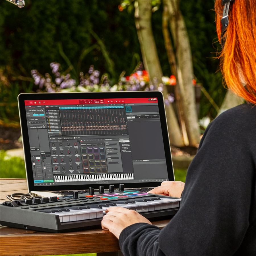 Součástí balení je profesionální softwarový balík s DAW, virtuálními nástroji a pluginy od AIR Music Tech. Všechny nástroje lze plně ovládat přímo z klaviatury díky mapování.