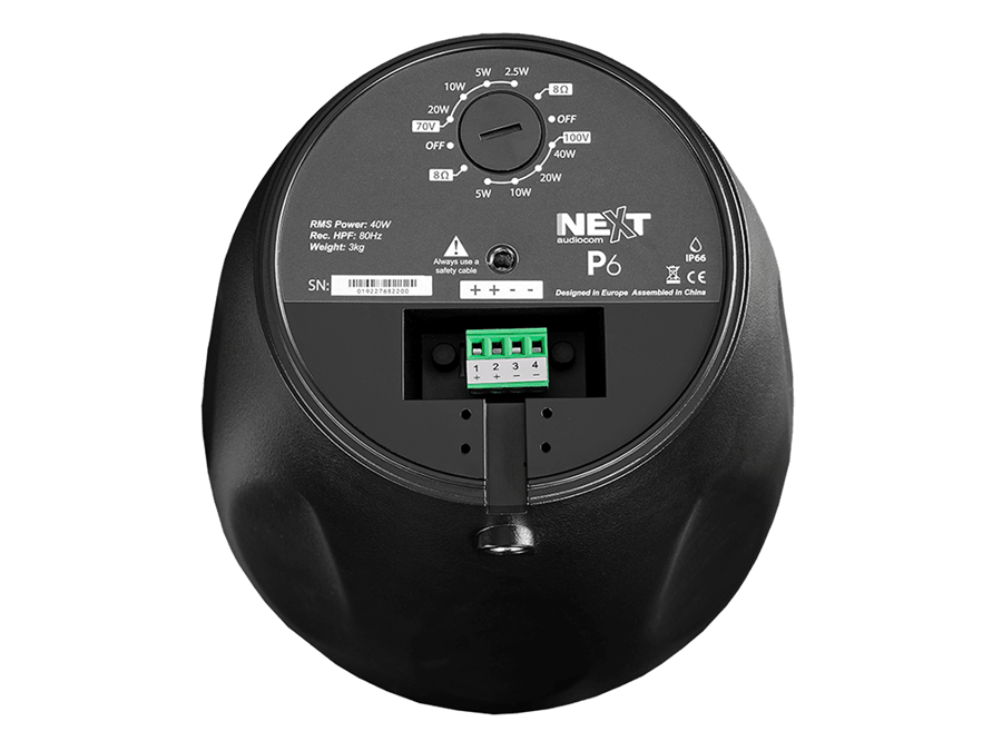 je pasivní 6,5“ závěsný reproduktor pro vnitřní a venkovní aplikace. P6 má integrovaný linkový transformátor, který umožňuje zvolit požadovaný výkon. Odnímatelné logo umožňuje citlivé začlenění do instalace, aniž by se narušil design místnosti a prostor. Integrovaný transformátor umožňuje použít reproduktor pro 100 V rozvody nebo jako nízkoimpedanční 8 Ω reproduktor. Závěsné lanko umožní snadnou a bezpečnou instalaci. Závěsné lanko, které je součástí dodávky, umožňuje snadnou bezproblémouvou instalaci.