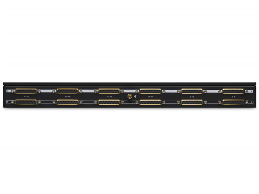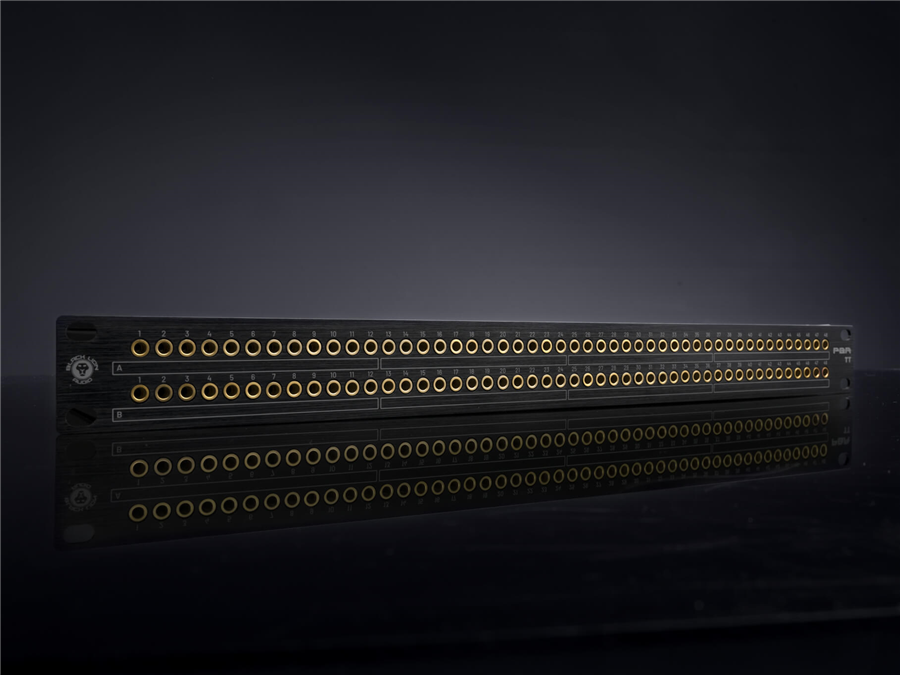 profesionální studiový patching panel s konektory TT a DB-25, 2x48 přípojných bodů, zlacené kontakty, vysoká spolehlivost a dlouhá životnost