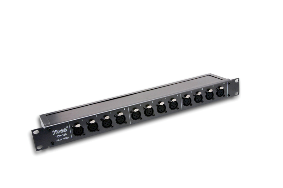 Patchbay, 12 bodů, De-normall, konektory XLR3F / XLR3M.