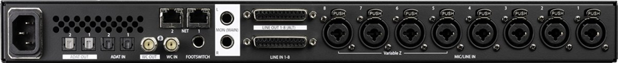 - 8 špičkových mikrofonních předzesilovačů na osmi XLR/TRS kombinovaných vstupech