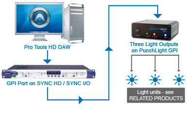 PunchLight GPI je spínací jednotka pro současné připojení až 3 světelných indikačních zařízení pro nahrávání:Recording DisplayRecording LampRecording StripRecording PlexsignRelay ExtenderPřipojuje ke GPI portu na synchronizéru SYNC HD (dříve SYNC I/O) nebo Universal Slave Driver a funguje zcela bez ovladačů.Součástí balení je napájecí adaptér 12V.