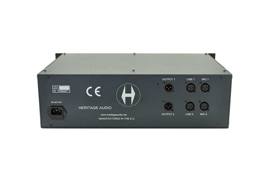 Každý kanál Heritage RACK 2 má vlastní nastavení výstupu a také podsvícený přepínač fantomového napájení. Dva vysokoimpedanční DI vstupy (Aultra, J-FET) umožňují přímé připojení nástrojů. Rack 2 je také přípraven k propojení dvou 2264 kompresorů ve dvou sběrnicích, A nebo B. Zadní panel je vybaven pozlacenými XLR konektory Neutrik pro mikrofonní a linkový vstup, stejně jako pro výstup.