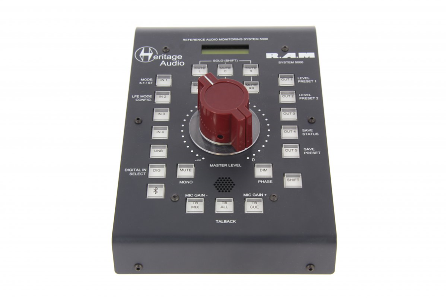 Systém 5000 se skládá ze stolního monitor-kontroleru a 19" rackové jednotky. Je navržen pro maximální flexibilitu a širokou škálu využití. Systém 5000 může být použit v konfiguraci pro 5.1 nebo stereo monitoring. Pro snadnou integraci do vašeho monitorovacího setupu je zde výběr z několika možností konektivity. Pro moderní hybridní studia poskytuje veškerou funkčnost jakou nabízí středová část u velkoformátových konzolí, včetně přepínání reproduktorů, funkce Dim, Mute a Solo, správu subwooferů, zesílení sluchátek, distribuce cue-mix, talkback, digitální vstupy s prémiovou D/A konverzí Wolfson a dokonce Bluetooth pro snadnou integraci mobilních zařízení. Ať už mícháte hudbu, nebo zvuk k filmu Heritage Audio RAM System 5000 posune vaši přesnost a rozhodování v mixu na zcela novou úroveň.