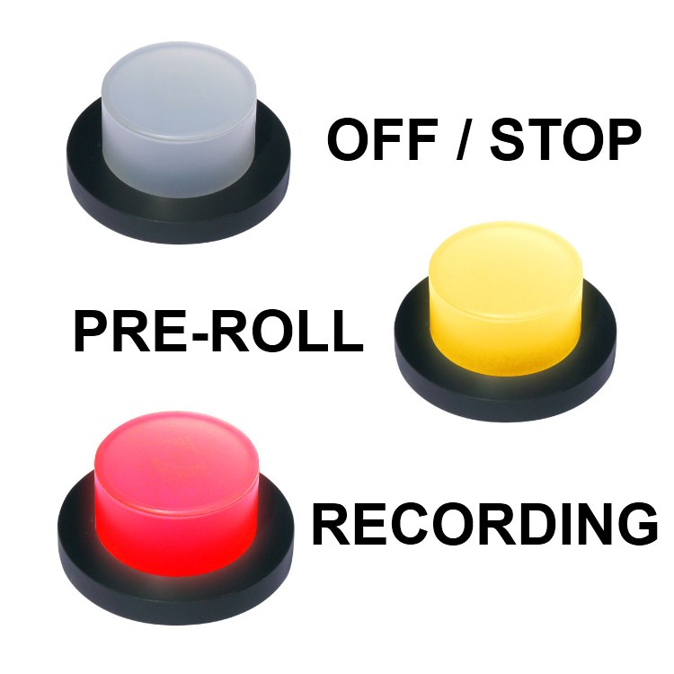 • automatická indikace nahrávání (obvykle červená) a record ready/preroll (např. žlutá)