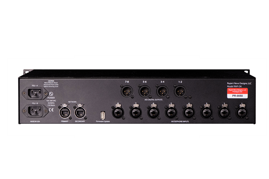 RMP-D8 přináší legendární zvuk Rupert Neve Designs do moderního světa Dante konektivity. Audio signál RMP-D8 je kompatibilní s jakýmkoliv zařízením Dante napříč aplikacemi, od koncertních sálů a stadiónů po kluby a nahrávací studia. RMP-D8 je postaven v robustním, zesíleném ocelovým šasi pro lepší stínění radiových frekvencí schopné odolat tomu nejtvrdšímu zacházení. Redundantní zdroje napájení jsou schopné provozu po celém světě.