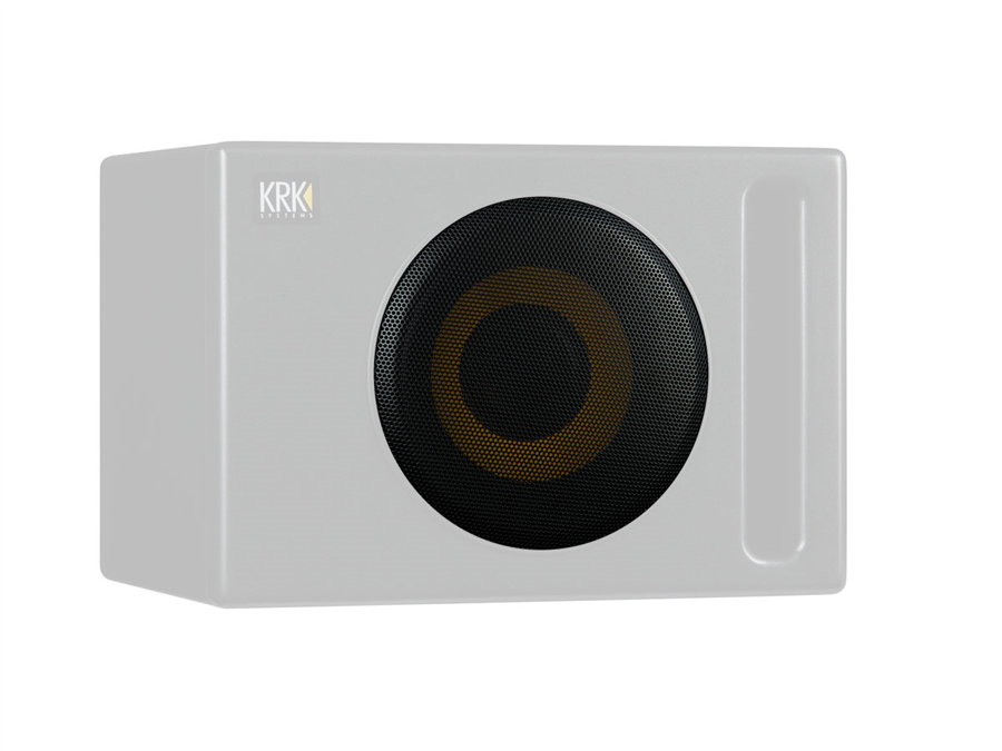 Stylová černá mřížka pro subwoofer KRK S10.4, která účinně ochrání reproduktor.