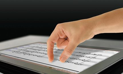 - Přímý zápis do partitury prstem nebo pomocí pera