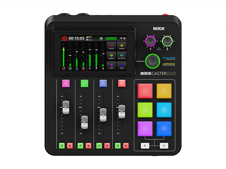 podcastový a streamovací kompaktní studiomix, 2 analogové vstupy – mikrofon/linka/nástroj, 2x sluchátkový výstup, 1x headset vstup, výstup pro audio monitory, 2x USB-C, Wi-Fi, Ethenet, Bluetooth®, receiver pro RØDE wireless, 4 fyzické a 3 virtuální fadery, dotykový LCD displej, procesory APHEX®, RØDE FX efekty