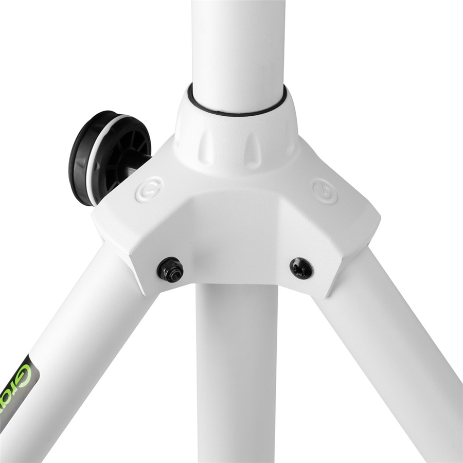 Bílý reproduktorový stojan 106-195 cm, nosnost 50 kg, hmotnost 2,2 kg.