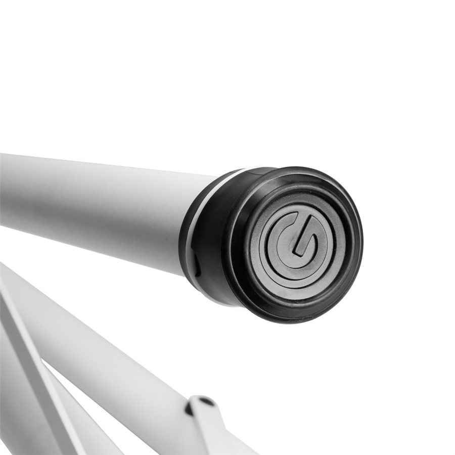 Přepracované, extrémně odolné upevnění opěrných nohou je vyrobeno z tlakově litého hliníku. Ocelová manžeta úpravy výšky je prakticky nezničitelná a zajišťuje více stability. Bezpečnostní knoflík uzamyká 35 cm dlouhou, silnou prodlužovací tyč.