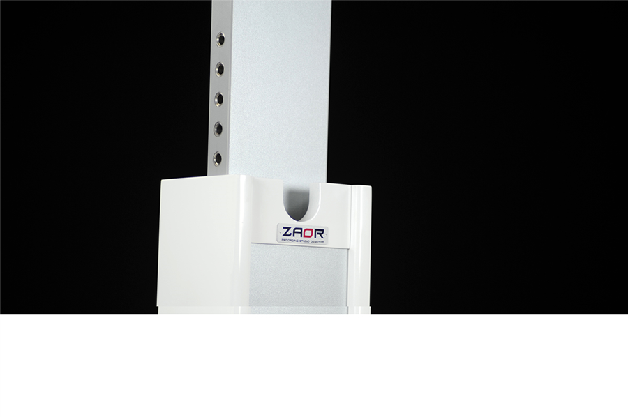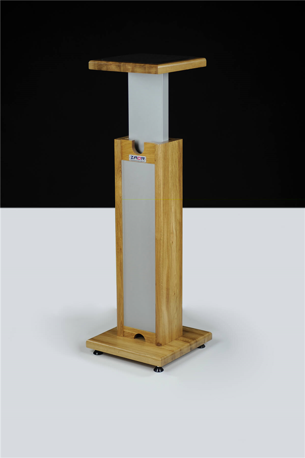 Masivní, výškově nastavitelný stojan na reprobox s bezpečnostním mechanizmem a vrstvou Aerstop, která zamezuje vibracím. Povrchová úprava dub v kombinaci s černou.