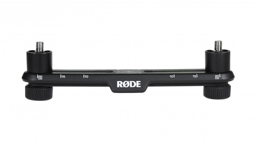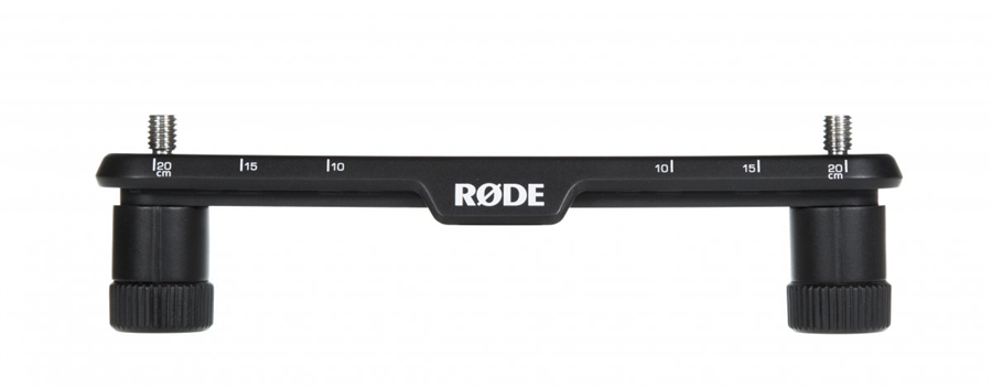 RØDE Stereo Bar je robustní řešení pro montáž dvou mikrofonů ve stereo pozici. Díky označené rozteči (až do 20cm), stejně tak jako ukazovatele měření uhlů ORTF a XY pozice umožňuje rychle a snadno dosáhnout požadované pozice mikrofonů pro komplexní stereo záznam. Je vybaven klasickým 5/8” závitem pro bezproblémové uchycení na mikrofonní stojan. Robustní konstrukce z ABS vydrží váhu i dvou těžkých velkomembránových mikrofonů, jako např. RODE K2.