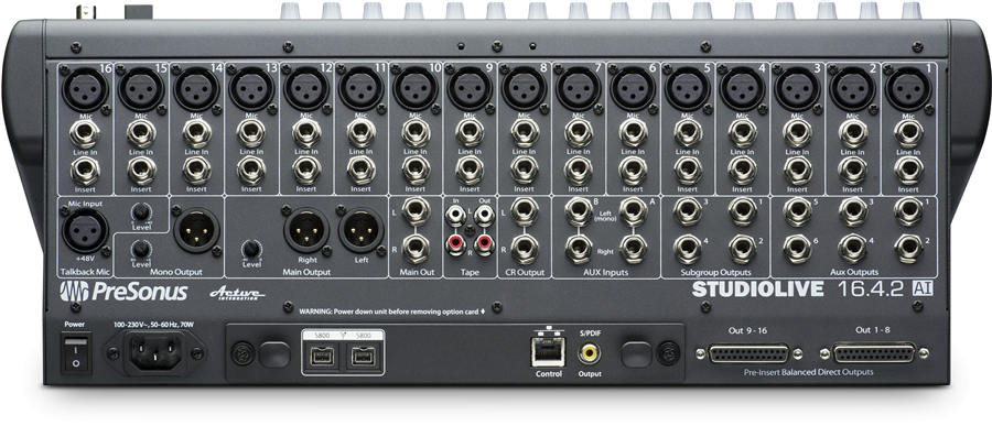 StudioLive 16.4.2AI je 16-kanálový digitální mixpult a FireWire audio rozhraní, které nabízí spoustu nástrojů nejen pro živé zvučení, ale také pro záznam ve studiové kvalitě. 16 mikrofoních preampů PreSonus XMAX a integrovaný vysoce výkonný DSP procesor zajistí vysokou zvukovou kvalitu a flexibilní processing. S pomocí vestavěných portu FireWire 800, LAN a WiFi lze snadno mixpult použít jako záznamové zařízení a ovládat jej dálkově z počítače nebo tabletu. Hledáte-li mixážní pult, který nabízí velké množství pokročilých funkcí a vysokou kvalitu zvuku za přijatelnou cenu, je StudioLive 16.4.2AI řešením právě pro vás.