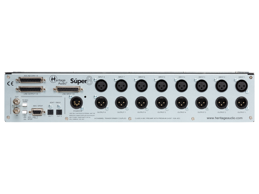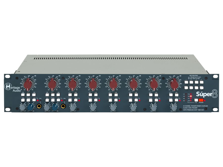 Super 8 představuje první komplexní osmi kanálový preamp s vysoce ceněnými předzesilovači ve stylu ’73 a dvěma nástrojovými vstupy s nadstandardním vybavením. Současně máte k dispozici prémiové 24 bitové 192 kHz převodníky AD. Digitální signál můžete odebírat z ADAT, AES/EBU, nebo S/PDIF. Pro začlenění do vašeho digitálního systému můžete využít Word Clock. Nikdy nebylo snazší pomocí jediného zařízení převést osm vysoce kvalitních analogových signálů do jakékoli digitální podoby.