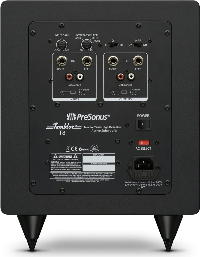 200 W aktivní studiový subwoofer s 8" reproduktorem, symetrickými vstupy TRS, nesymetrickými vstupy a výstupy RCA, Lowpass filtrem, přepínačem fáze, Ground Lift a ovládačem hlasitosti.