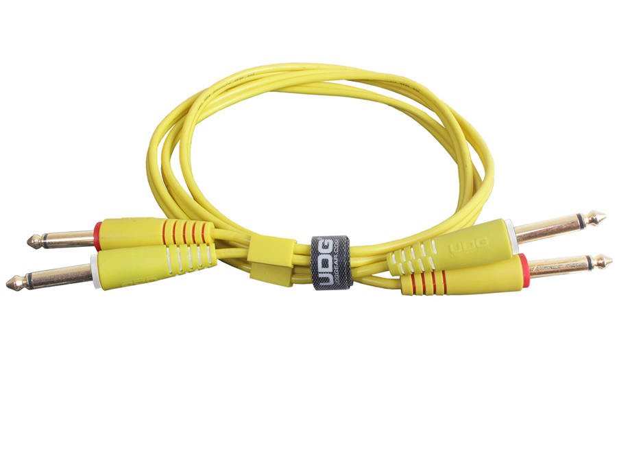 Dvojitý audio kabel s konektory TS 6,3 mm (velký jack) k propojení DJ, profesionálních i komerčních přístrojů, zlacené kontakty konektorů, kvalitní stínění, mechanická odolnost, barva žlutá